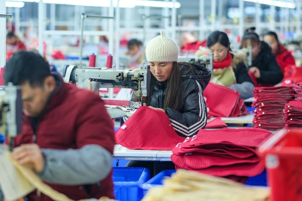 2024年1月18日,社區(qū)居民在湖南省湘西土家族苗族自治州鳳凰縣禾庫鎮(zhèn)紅安社區(qū)的鄉(xiāng)村振興就業(yè)車間工作。紅安社區(qū)是由易地搬遷安置區(qū)單獨(dú)成立的新社區(qū),也是湖南省最大的少數(shù)民族聚居安置區(qū)。新華社記者 張鋮 攝