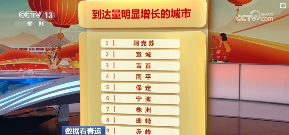 在2月7日的春運(yùn)熱力圖上,最熱門的城市變化不大,根據(jù)12306的票務(wù)數(shù)據(jù),預(yù)計(jì)2月7日將有48個(gè)城市的到達(dá)人次出現(xiàn)明顯增長(zhǎng)。