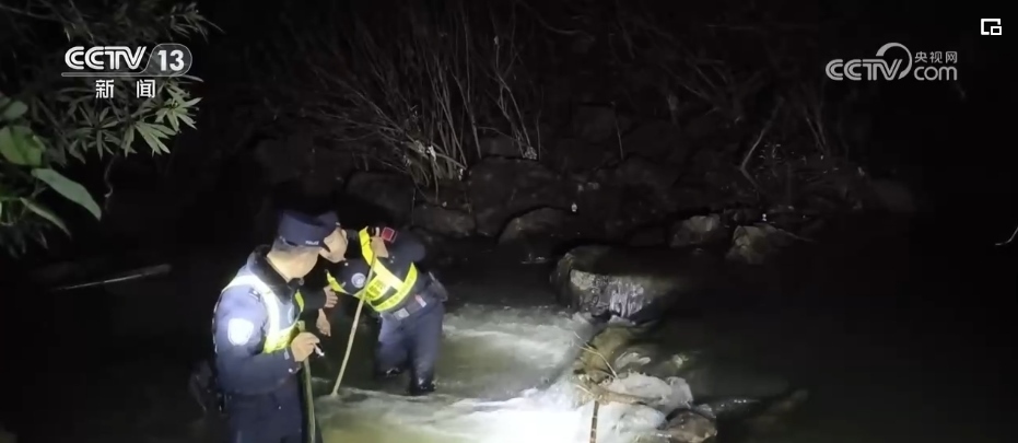 在廣西崇左的中越邊境線上,憑祥邊境管理大隊三色橋抵邊警務(wù)室執(zhí)勤民警在深夜里巡邊,檢查邊境防護設(shè)施,遇到湍急的溪流,挽起褲腳涉水而過。