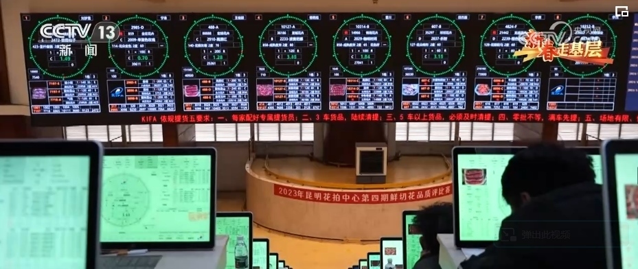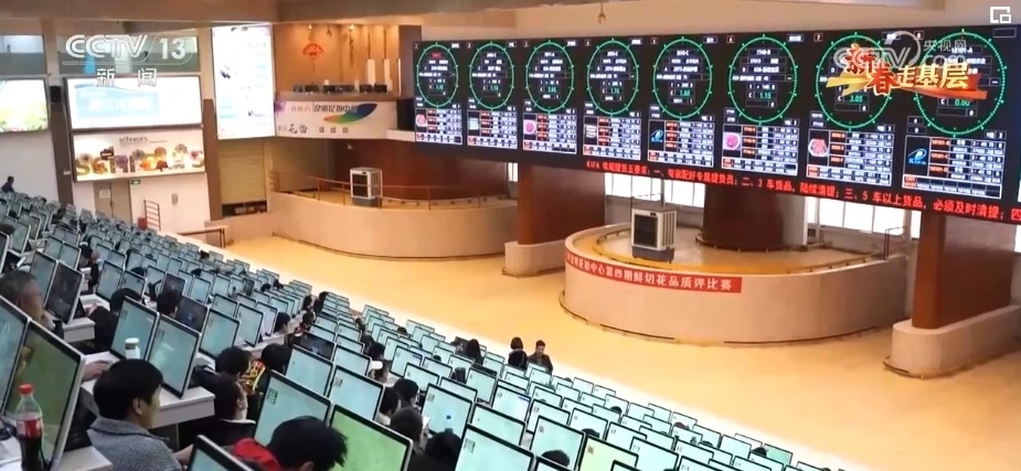 這里是昆明花卉拍賣交易中心,年交易量近25億枝,高峰期每天交易量1100多萬枝。這里的3000多位鮮花經(jīng)紀(jì)人,鏈接著3萬多家供貨商。這里的40多個品類,3000多個品種的鮮切花,市場遍及全球40多個國家和地區(qū)。這里的拍賣交易中心,平均每一筆花的交易時間不到4秒,但凡有點猶豫,就拍不到自己想要的花。