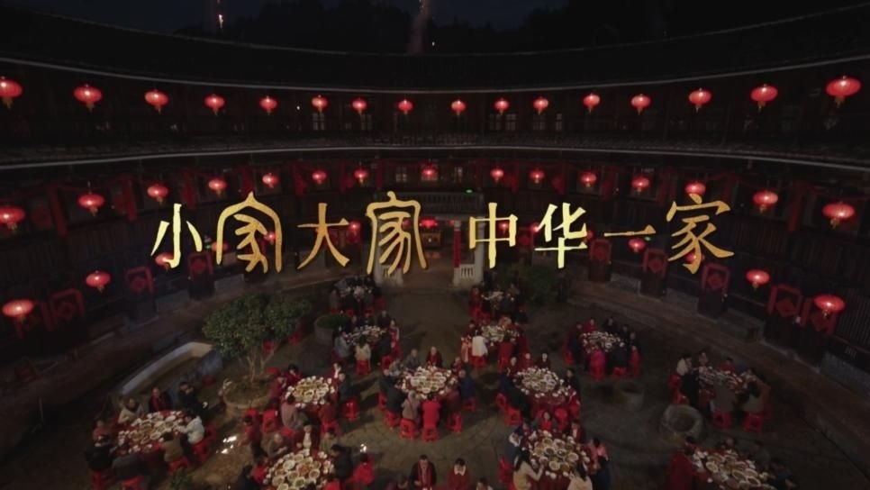 影片的結(jié)束語是點(diǎn)睛之筆:“我們相稱相謂,只因相愛相親。小家大家,中華一家。” 使用了金文、篆書、楷體三種不同時期的字體展現(xiàn)一句話里的三個“家”字,巧妙地把數(shù)千年來中華傳統(tǒng)文化中“家文化”的源遠(yuǎn)流長、傳承至今之意蘊(yùn)含其中,將家的形式與家的內(nèi)涵完美地融合在一起,既表達(dá)了中國人對家的眷戀與倚賴,也體現(xiàn)了對中華大家庭的熱愛與自豪。