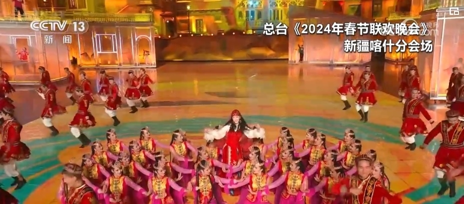 2024年,總臺春晚第一次把分會場設(shè)在了新疆喀什。結(jié)合喀什的地域特點,導演組2024年將很多春晚的“第一次”帶到了新疆喀什。