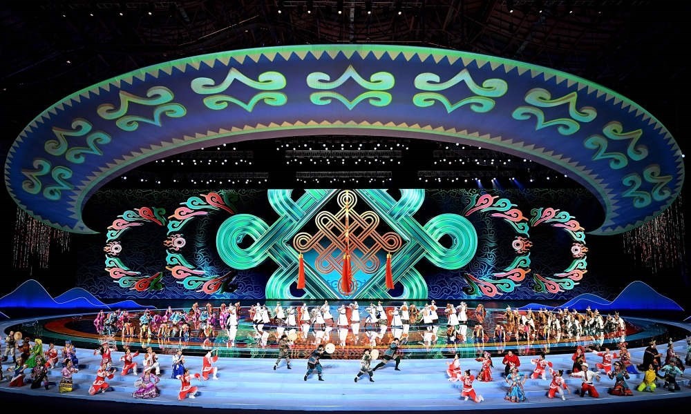 天津年畫、蘇州園林、福建土樓、西藏布達拉宮……在開幕式的代表團入場環(huán)節(jié),各省區(qū)市的人文風情和地標元素通過剪紙、國潮風彩繪等藝術(shù)風格展現(xiàn),搭配著《鄂倫春小唱》《美麗的草原我的家》《駿馬奔馳保邊疆》等耳熟能詳?shù)膬?nèi)蒙古音樂,讓觀眾領(lǐng)略到中華民族輝煌璀璨的文化。