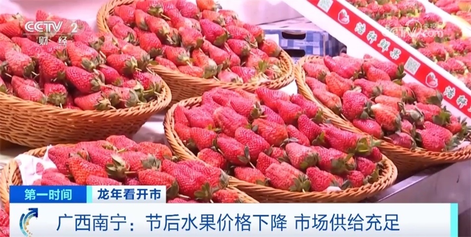 春節(jié)假期過(guò)后,在廣西南寧,記者走訪發(fā)現(xiàn)水果市場(chǎng)有所“降溫”,大家想要品嘗車(chē)?yán)遄?、草莓等水果正是好時(shí)機(jī)。