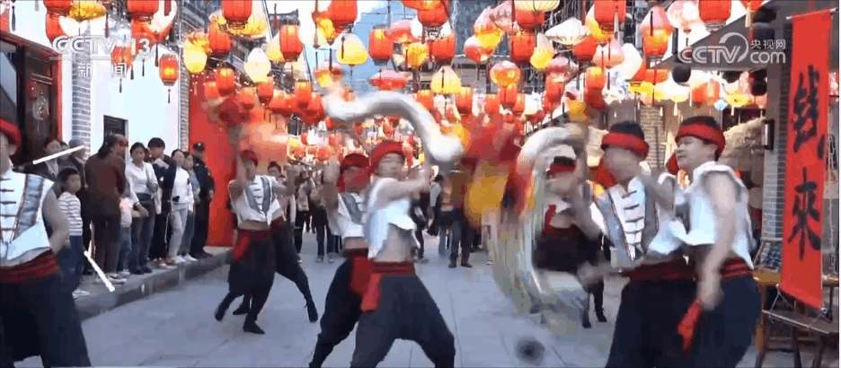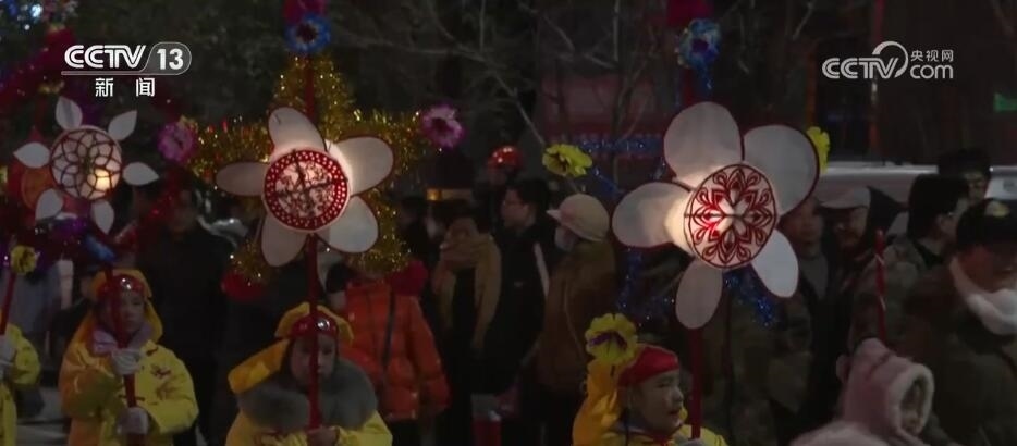 轉(zhuǎn)花燈表演多在佳節(jié)良宵時進行,寓意前程光明、生活幸福,此次表演將持續(xù)到正月十六。