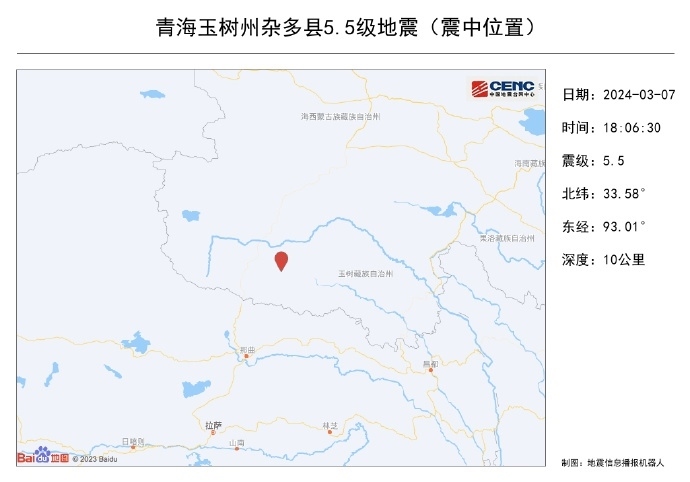 青海玉樹發(fā)生5.5級地震 震中周邊屬于高原無人區(qū)