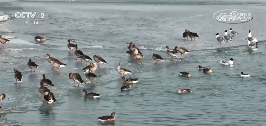 三月份以來,寧夏青銅峽庫區(qū)濕地自然保護(hù)區(qū)陸續(xù)迎來了北遷的候鳥,畫面中,三只大天鵝在水中暢游,隨后輕輕踏上冰面。這時(shí)一群豆雁也慢慢游向大天鵝,大天鵝與豆雁“共舞”,構(gòu)成了一幅充滿活力的生態(tài)畫卷。預(yù)計(jì)到三月中旬,青銅峽庫區(qū)濕地保護(hù)區(qū)將迎來候鳥遷徙的高峰期。