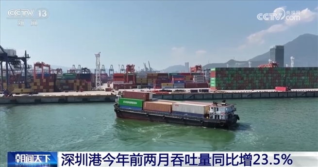 港口是國民經(jīng)濟(jì)發(fā)展的“晴雨表”,今年以來,深圳港迎來海運(yùn)出貨高峰。據(jù)深圳市交通運(yùn)輸局統(tǒng)計(jì),今年前兩個(gè)月,深圳港集裝箱吞吐量達(dá)483萬標(biāo)箱,同比增長23.5%。