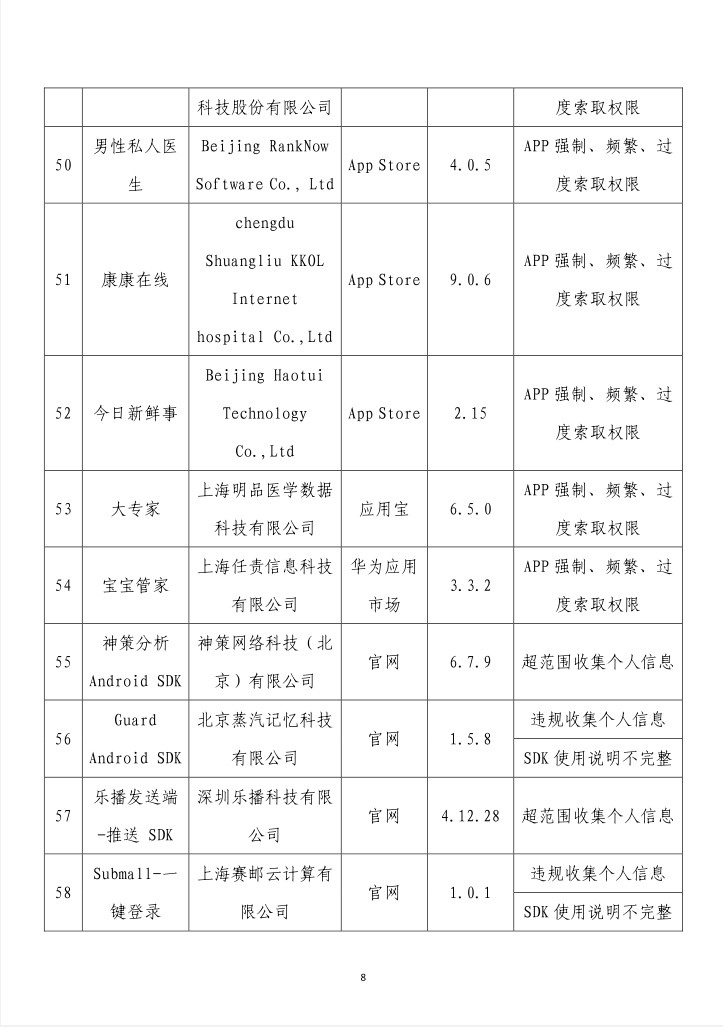 央視網(wǎng)消息:據(jù)工業(yè)和信息化部網(wǎng)站消息,工業(yè)和信息化部信息通信管理局3月14日公布《關(guān)于侵害用戶權(quán)益行為的APP(SDK)通報(bào)(2024年第2批,總第37批)》: