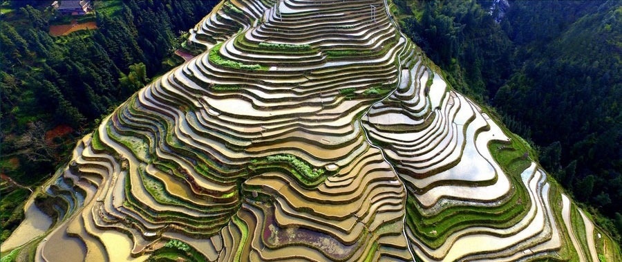 這里被譽(yù)為中國(guó)最好梯田之一,苗族是“稻飯魚羹”的民族,梯田中散落著苗鄉(xiāng)特有的吊腳樓。是苗族人世世代代留下的杰作。