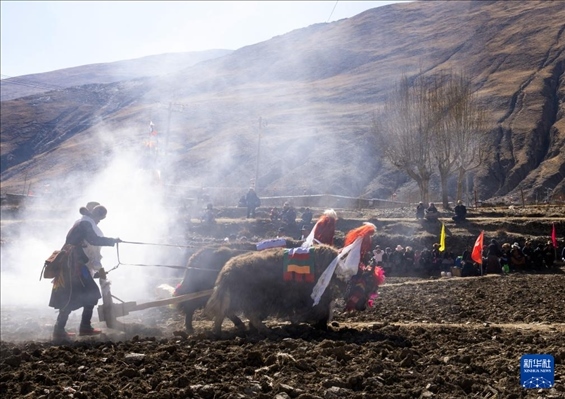 3月16日,西藏各地農(nóng)區(qū)舉行一年一度的開耕儀式,拖拉機、旋耕機等機械的轟鳴聲打破了高原田野的寧靜。