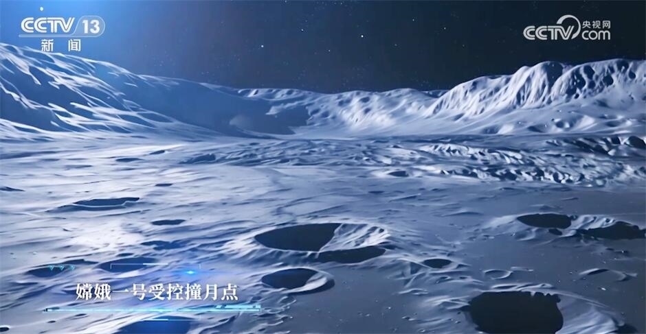 不過不要緊,我現(xiàn)在所在的這個(gè)位置也不是隨便選的,看點(diǎn)很多。專家告訴我,這里是月球上觀測(cè)鵲橋二號(hào)星箭分離的一個(gè)理想位置,而且這里還跟中國(guó)的探月工程有著很深的淵源。這就是月球的豐富海區(qū)域。豐富海,耳熟嗎?15年前,也就是2009年3月1日,中國(guó)探月工程嫦娥一號(hào)探測(cè)器就是在這里完成受控撞月的,也正是這英勇一撞,為接下來(lái)的月球探測(cè)獲取了很有價(jià)值的數(shù)據(jù)。豐富海在月球的位置也很醒目,下次月圓的時(shí)候,你抬頭看月亮,找到月球東南方向這一片暗黑色的斑塊,就是豐富海啦!