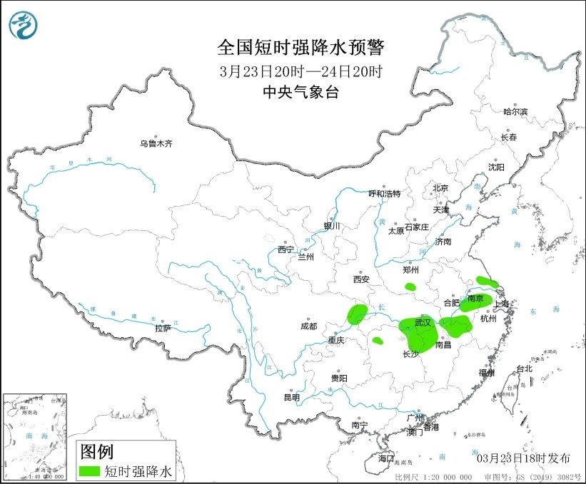 央視網(wǎng)消息:中央氣象臺3月23日18時繼續(xù)發(fā)布強對流天氣藍色預(yù)警。預(yù)計3月23日20時至24日20時,湖北東部、湖南北部、江西北部、重慶東南部、貴州北部等地的部分地區(qū)將有8-10級雷暴大風(fēng)或冰雹天氣;安徽南部、江蘇南部、湖北東南部、湖南東北部、江西北部、浙江北部、重慶北部等地的部分地區(qū)將有短時強降水天氣,最大小時雨量20-40毫米,局地可達50毫米以上。