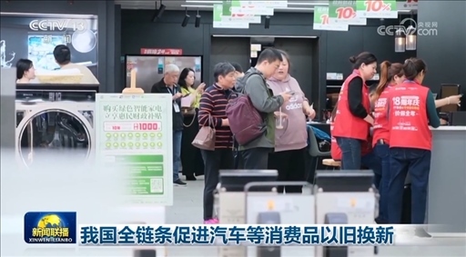 央視網(wǎng)消息(新聞聯(lián)播):記者從商務(wù)部了解到,近日,14部門聯(lián)合發(fā)布《推動(dòng)消費(fèi)品以舊換新行動(dòng)方案》,部署組織在全國(guó)范圍內(nèi)開展汽車、家電、家裝廚衛(wèi)等消費(fèi)品以舊換新。