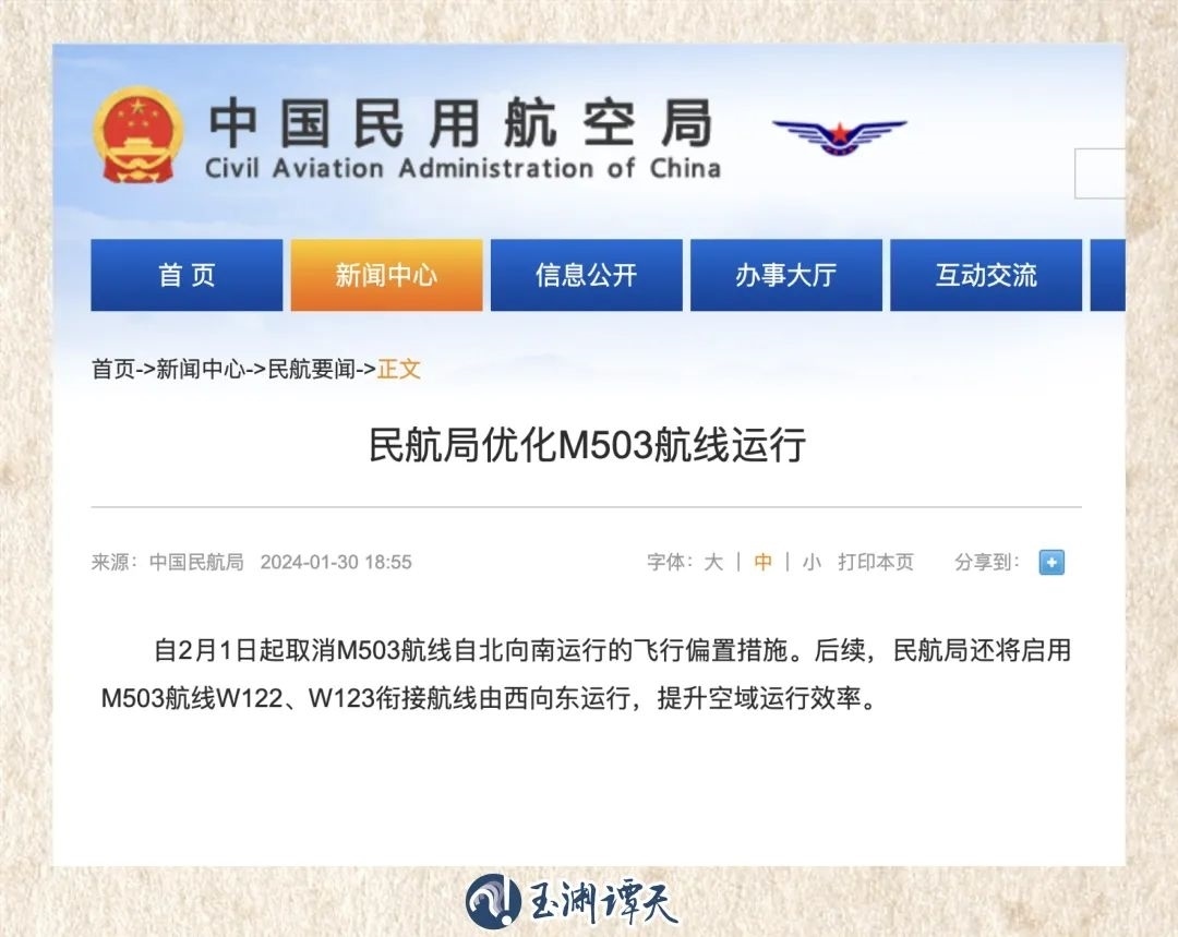 譚主注意到,此次消息中的M503航線,在1月30日民航局發(fā)布的消息中也曾出現(xiàn):