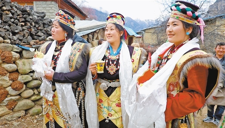 下尼屋的田壟上,35歲的扎西旺姆正在和相熟的村民一起干農(nóng)活,她是從波密縣八蓋鄉(xiāng)嫁到這里的,已經(jīng)在尼屋生活了7年。“這里和八蓋一樣,都以農(nóng)耕為主,氣候也差不多,人也很熱情,我和鄰居們經(jīng)常一起挖蟲草、采松茸、干農(nóng)活,感覺很幸福!”