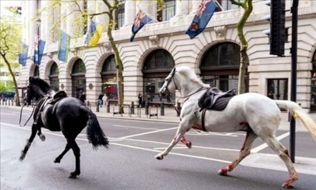 ·現(xiàn)場一片混亂!英國皇家騎兵隊(duì)馬匹失控在街頭狂奔。