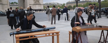 凱旋門下,神奇的一幕發(fā)生了,中國藝術(shù)家和法國軍樂隊(duì)同框演奏,巴黎街頭同時(shí)回蕩著中法兩國的音樂聲。