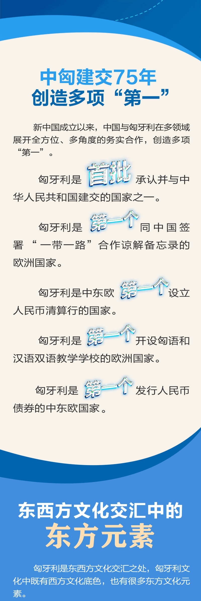 中國與匈牙利的傳統(tǒng)友誼源遠(yuǎn)流長。建交75年來,雙方在國際事務(wù)中相互支持、密切配合。近年來,在兩國領(lǐng)導(dǎo)人的戰(zhàn)略引領(lǐng)下,中匈關(guān)系始終保持高水平發(fā)展。雙方政治互信不斷加深,互利合作成果豐碩,人文交流豐富多彩,在國際和地區(qū)事務(wù)中協(xié)作良好。
