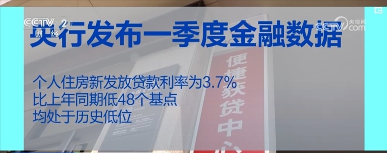 從貸款利率看,4月份,企業(yè)新發(fā)放貸款加權(quán)平均利率為3.76%,比上年同期低23個基點;個人住房新發(fā)放貸款利率為3.7%,比上年同期低48個基點,均處于歷史低位。