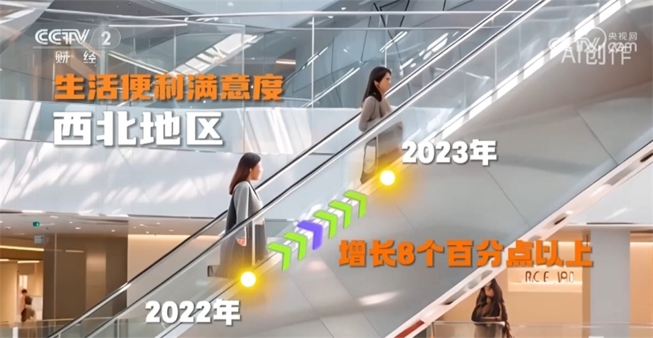 生活便利方面的滿意度較前一年增長了6個(gè)百分點(diǎn)。華南地區(qū)滿意度最高;西北地區(qū)增長幅度最大,達(dá)到了8個(gè)百分點(diǎn)以上。