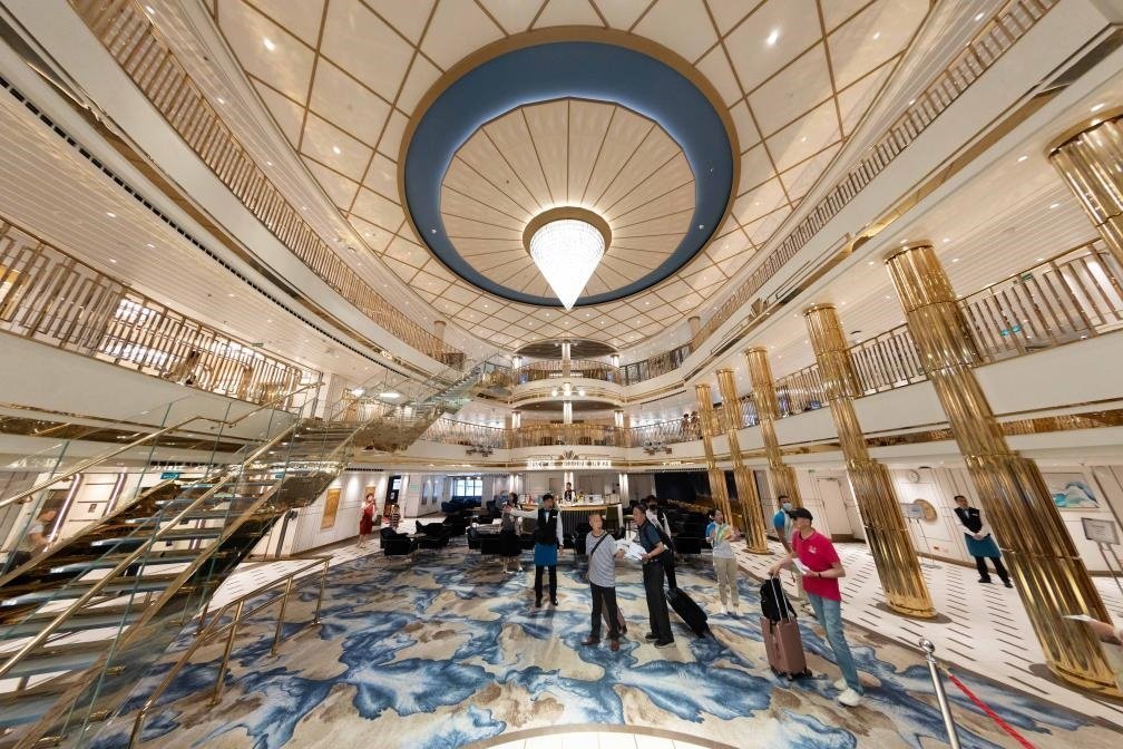 5月26日拍攝的國(guó)產(chǎn)大型郵輪“愛達(dá)·魔都號(hào)”愛達(dá)廣場(chǎng)。新華社記者 王翔 攝