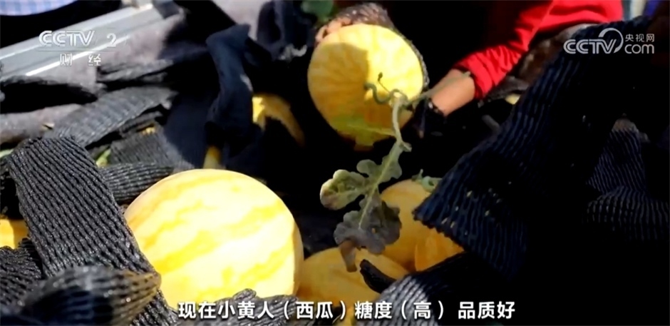 西瓜收購(gòu)商稱:“我今天來(lái)這兒收小黃人西瓜,發(fā)往鄭州、北京、上海,各個(gè)大城市都發(fā)?,F(xiàn)在,小黃人西瓜糖度高、品質(zhì)好。