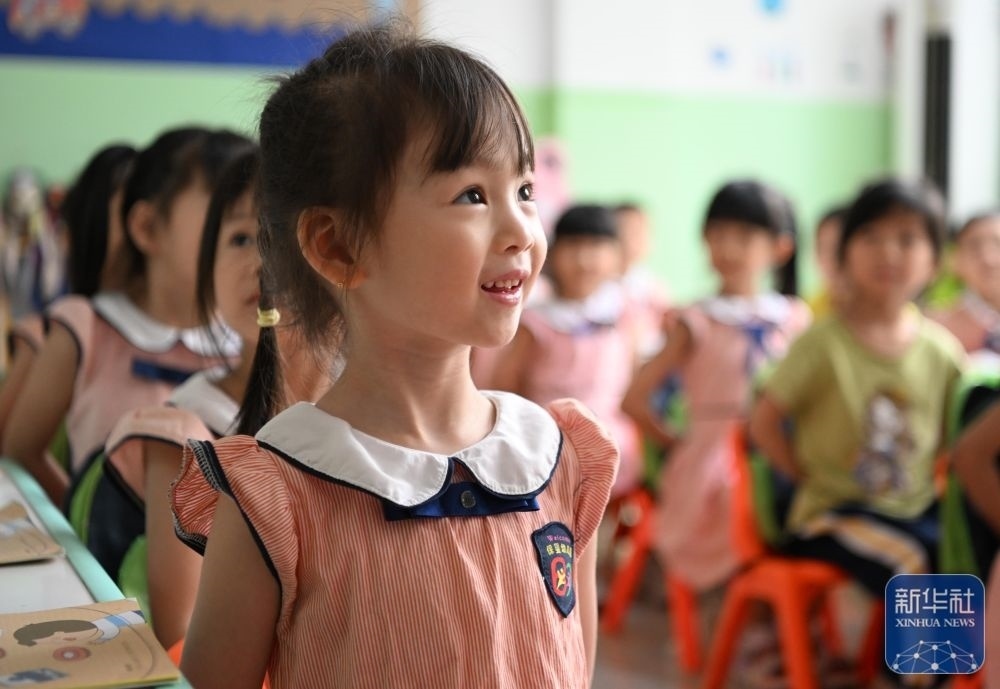 5月29日,在汕頭市貴嶼鎮(zhèn)北林保嬰幼兒園,莊恩琪(右)和同學在課堂上。