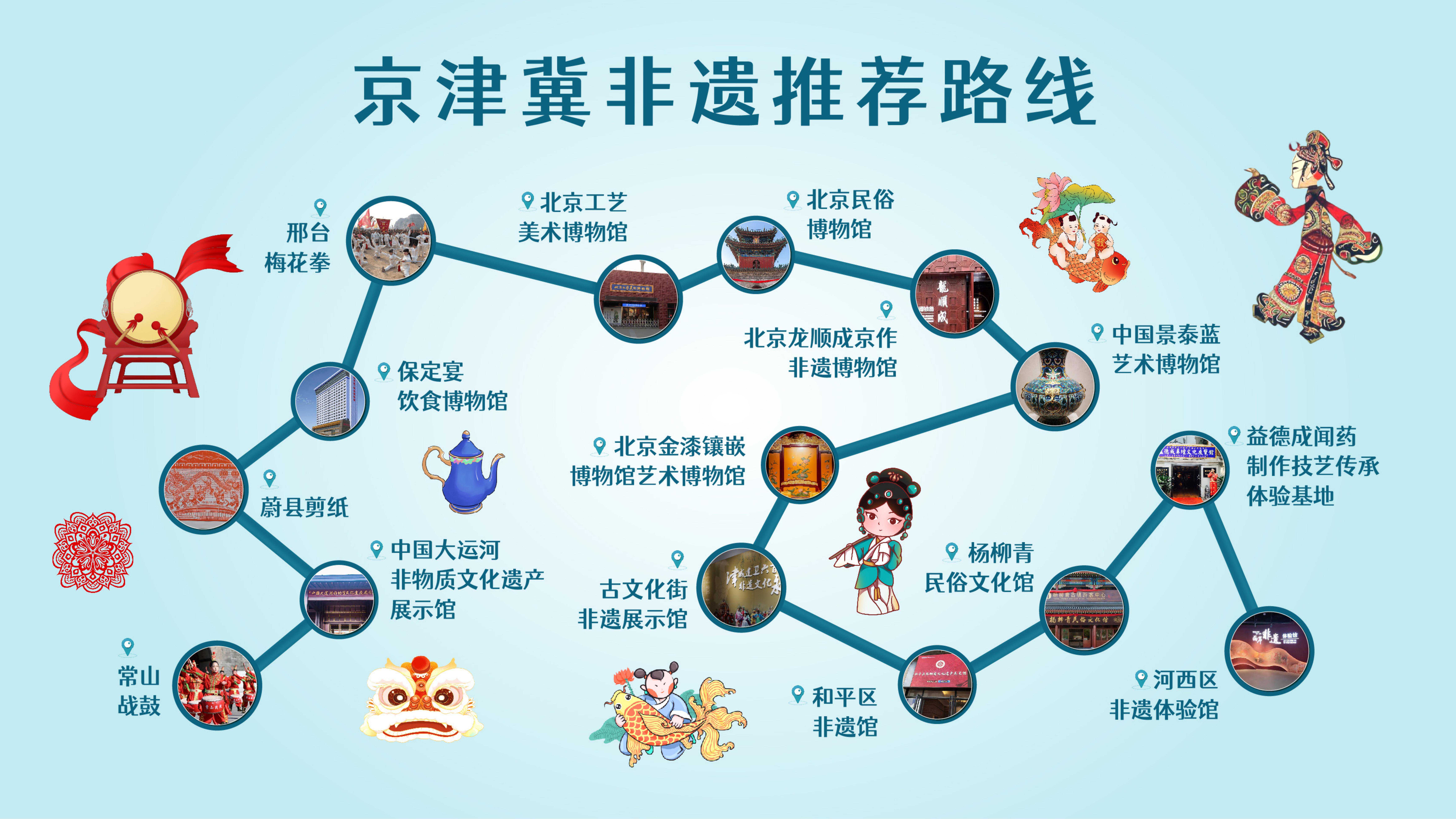 本次發(fā)布的京津冀文旅地圖涵蓋三地美食、非遺、古跡、紅色等四條線路,包含長城、京張?bào)w育文化旅游帶、大運(yùn)河國家文化公園建設(shè)、冬奧遺產(chǎn)等多處旅游資源和貫穿全年的文旅系列活動(dòng)。