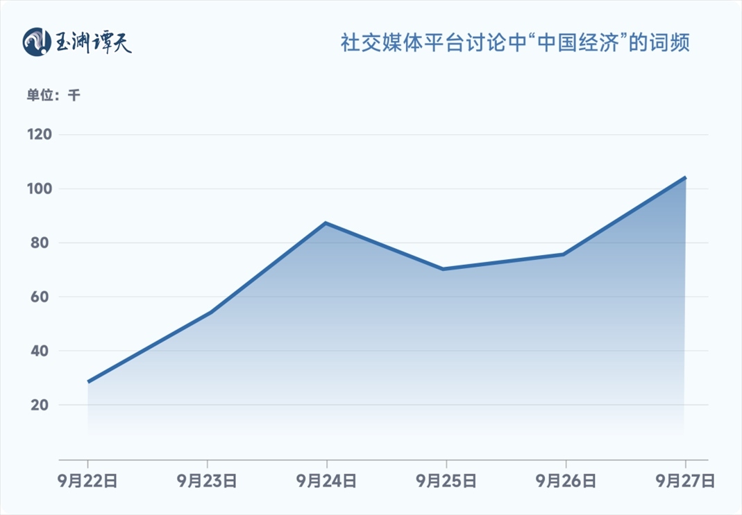 從這張曲線圖上可以看到,輿論場(chǎng)對(duì)“中國(guó)經(jīng)濟(jì)”的討論,在過(guò)去一周經(jīng)歷了2個(gè)峰值。其中,“信心”這個(gè)詞出現(xiàn)的頻率經(jīng)歷了兩次躍升。