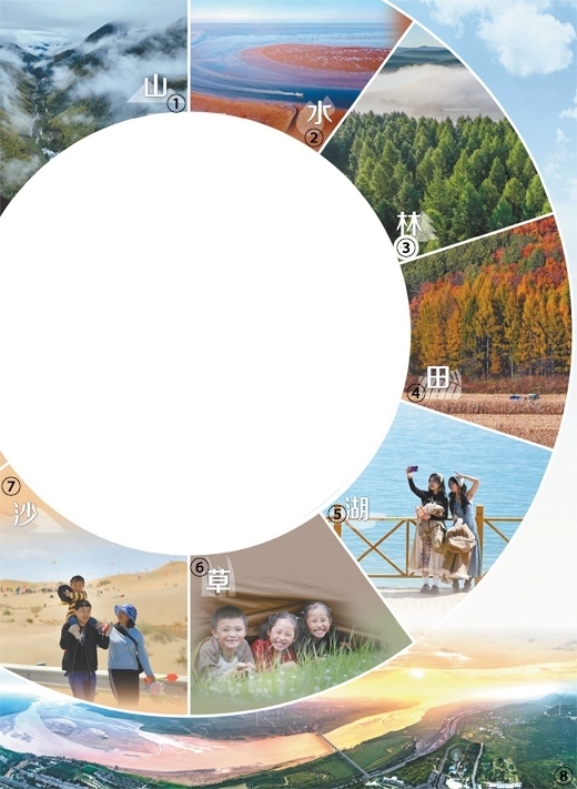 圖①:雨后的武夷山國家公園云霧繚繞。國家公園是我國自然生態(tài)系統(tǒng)中最重要、自然景觀最獨特、自然遺產(chǎn)最精華、生物多樣性最富集的部分,我國國家公園建設是生態(tài)文明建設中具有示范引領意義的工程。邱汝泉攝(新華社發(fā))圖②:山東東營市紅灘濕地旅游區(qū)生態(tài)濕地,生長在灘涂上的堿蓬等鹽生植物,如同一塊巨大的紅地毯。劉智峰攝(影像中國)圖③:河北承德市圍場滿族蒙古族自治縣塞罕壩國家森林公園。組建至今,塞罕壩機械林場營造人工林百萬畝,創(chuàng)造了荒原變林海的奇跡。劉滿倉攝(影像中國)圖④:黑龍江雞西密山市黑土地上種植的玉米。近年來,我國加強黑土地保護,守護“耕地中的大熊貓”。孫樹寶攝(影像中國)圖⑤:游客在青海湖畔拍照。當?shù)亓己玫纳鷳B(tài)環(huán)境和優(yōu)美的景色吸引了來自全國各地的大量游客。新華社記者 張 龍攝圖⑥:四川甘孜藏族自治州日通草原上,躲在帳篷里的小朋友享受假日生活。我國持續(xù)推進草原生態(tài)保護修復,穩(wěn)步提升草原生態(tài)功能。新華社記者 江宏景攝圖⑦:新疆博湖縣博斯騰湖畔的艾勒遜烏拉沙漠,游客正帶著孩子在游玩。近年來,我國推進科學化、規(guī)?;紊?,重點治理區(qū)實現(xiàn)“沙進人退”到“綠進沙退”的歷史性轉(zhuǎn)變。年 磊攝(人民視覺)圖⑧:黃河陜西潼關段景觀。近年來,我國持續(xù)推動黃河流域生態(tài)保護和高質(zhì)量發(fā)展,流域生態(tài)環(huán)境持續(xù)明顯向好,讓黃河成為造福人民的幸福河。王生暉攝(人民視覺)