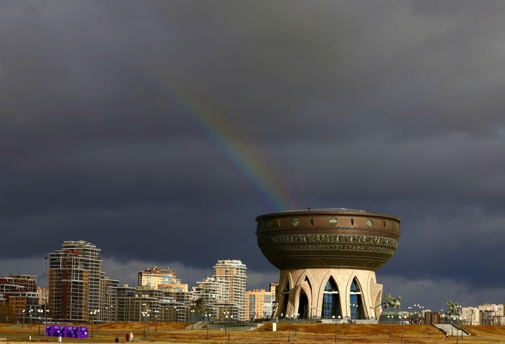 坐落在喀山市中心的地標(biāo)建筑“家庭中心”形似一口大鍋,是新人登記結(jié)婚的地方,其獨(dú)特的外形契合了韃靼人對(duì)婚姻和家庭的理念:只要在一口鍋里吃飯就是一家人。