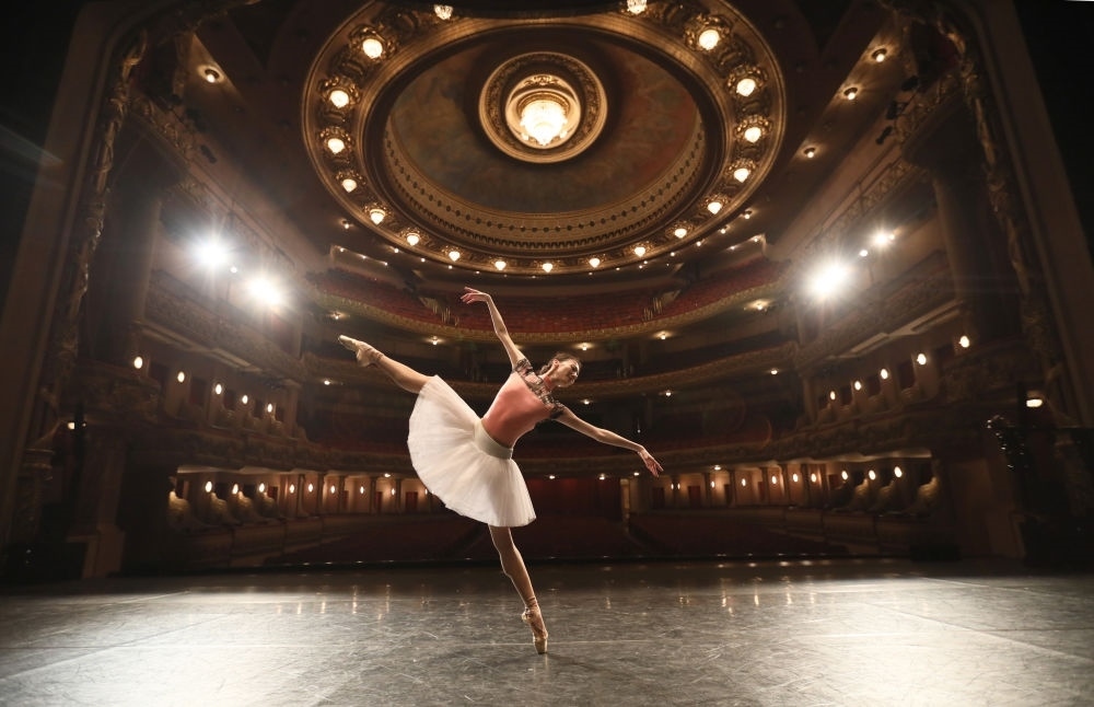 2019年5月24日,中央芭蕾舞團演員方夢穎在巴西里約熱內(nèi)盧市政劇院排練。中央芭蕾舞團攜《大紅燈籠高高掛》來到巴西,為當?shù)孛癖姭I上帶有濃郁中國元素的精彩表演。