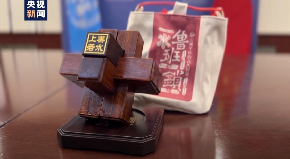 六根棕色木條相互巧妙鎖定,構(gòu)成一個穩(wěn)定的整體。這是中國擔(dān)任2023年11月聯(lián)合國安理會輪值主席首日向安理會成員贈送的禮品——魯班鎖。
