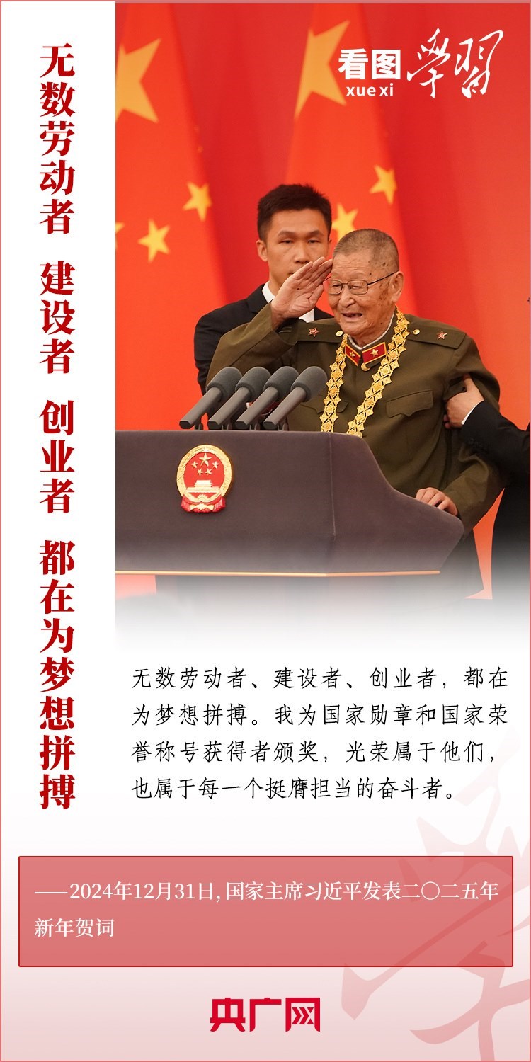 “夢雖遙,追則能達(dá);愿雖艱,持則可圓?!毙履昵跋Γ?xí)近平主席發(fā)表二〇二五年新年賀詞。在溫暖有力的講述中,習(xí)主席深情回望過去一年中國不平凡的奮斗歷程、精彩瞬間,感慨大家一道經(jīng)歷的風(fēng)雨彩虹、難忘時刻,贊美無數(shù)為夢想拼搏的勞動者、建設(shè)者、創(chuàng)業(yè)者。習(xí)主席說,中國式現(xiàn)代化的新征程上,每一個人都是主角,每一份付出都彌足珍貴,每一束光芒都熠熠生輝。讓我們充滿信心,在新的一年接續(xù)奮斗!