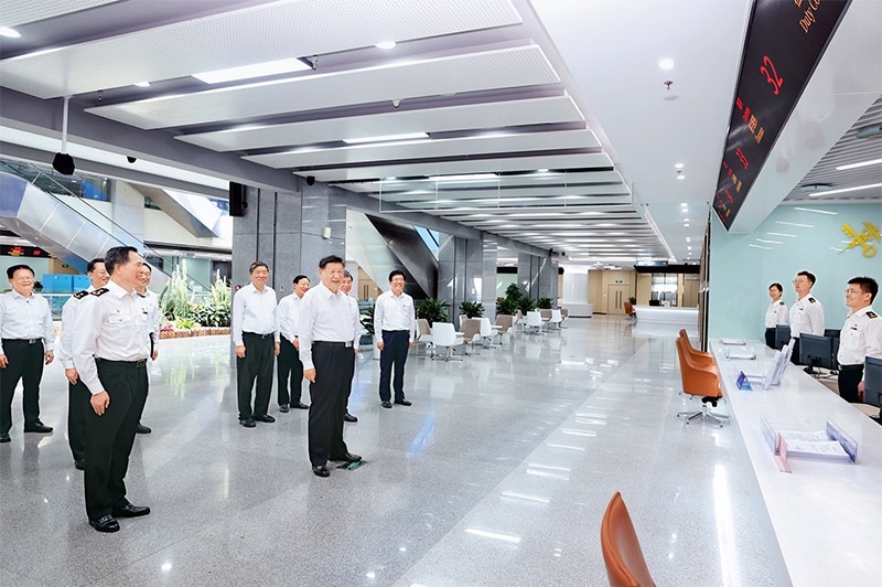 2024年10月15日至16日,中共中央總書記、國家主席、中央軍委主席習近平在福建考察。這是16日上午,習近平在中國(福建)自由貿易試驗區(qū)廈門片區(qū)考察時,同綜合服務大廳窗口工作人員親切交流。 新華社記者 鞠鵬/攝