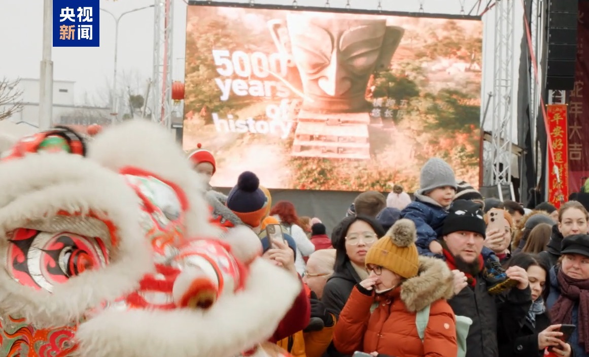 △中央廣播電視總臺蛇年春晚宣傳片在匈牙利吸引大量游客駐足觀看,在喜氣洋洋的氣氛和獨(dú)特魅力的中華文化中感受中國春節(jié)的熱烈氛圍。