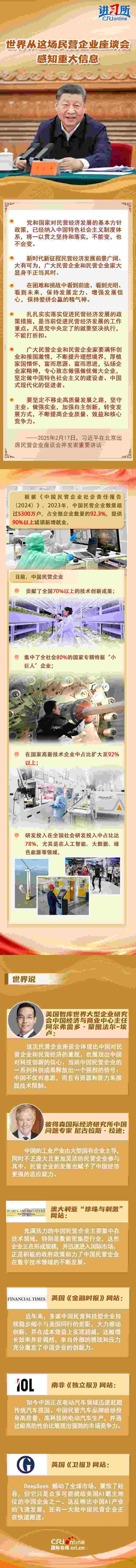 2月17日,中國為民營企業(yè)高質(zhì)量發(fā)展專門召開了一場最高規(guī)格的座談會。中共中央總書記、國家主席習(xí)近平出席座談會,聽取6名知名民營企業(yè)家就新形勢下促進民營經(jīng)濟發(fā)展的建議和意見,并發(fā)表重要講話。