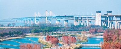 安徽省蕪湖市鏡湖區(qū)江東水生態(tài)公園風(fēng)景。
