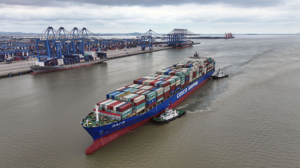 2024年5月19日,一艘海輪在廣西欽州港碼頭靠泊(無(wú)人機(jī)照片)。欽州港是北部灣港的組成部分,也是中國(guó)西南地區(qū)通往東盟的重要出海口。西部陸海新通道利用鐵路、公路、水運(yùn)等多種運(yùn)輸方式,由重慶一路向南,經(jīng)廣西北部灣出海通達(dá)世界各地。截至2025年1月1日,北部灣港總航線(xiàn)達(dá)80條,其中外貿(mào)航線(xiàn)49條,基本實(shí)現(xiàn)國(guó)內(nèi)主要港口和東南亞、東北亞主要港口全覆蓋。