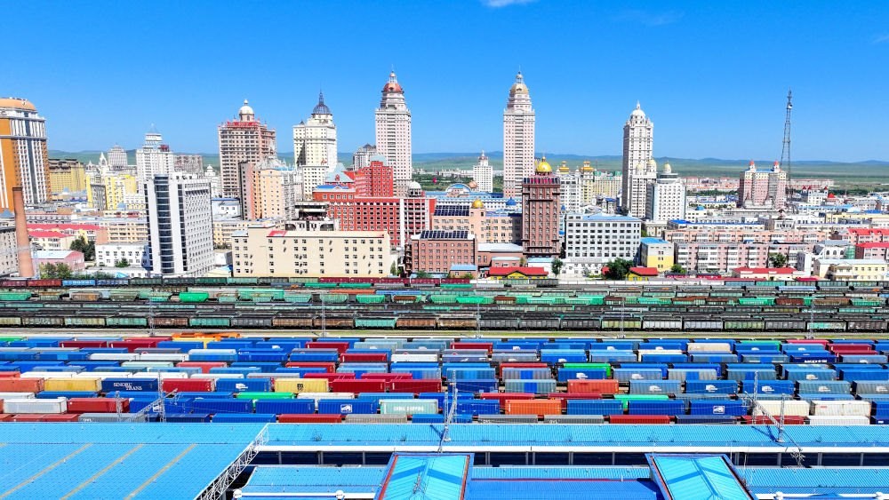 2024年8月20日,中歐班列在內(nèi)蒙古滿(mǎn)洲里口岸準(zhǔn)備出境(無(wú)人機(jī)照片)。滿(mǎn)洲里口岸位于中俄蒙三國(guó)交界處,是中國(guó)最大的陸路口岸,也是連接俄羅斯、蒙古國(guó)的重要樞紐。2024年,滿(mǎn)洲里口岸中歐班列通行量突破4000列,為推進(jìn)高質(zhì)量共建“一帶一路”注入新動(dòng)能。
