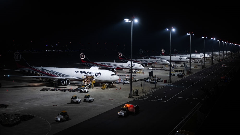 2024年5月25日凌晨,工人在湖北鄂州花湖國(guó)際機(jī)場(chǎng)停機(jī)坪裝卸貨物。鄂州花湖國(guó)際機(jī)場(chǎng)于2022年7月建成投運(yùn),是亞洲首個(gè)專(zhuān)業(yè)貨運(yùn)樞紐機(jī)場(chǎng)。截至2025年1月26日,鄂州花湖國(guó)際機(jī)場(chǎng)已開(kāi)通37條國(guó)際貨運(yùn)航線(xiàn)和66條國(guó)內(nèi)貨運(yùn)航線(xiàn)。