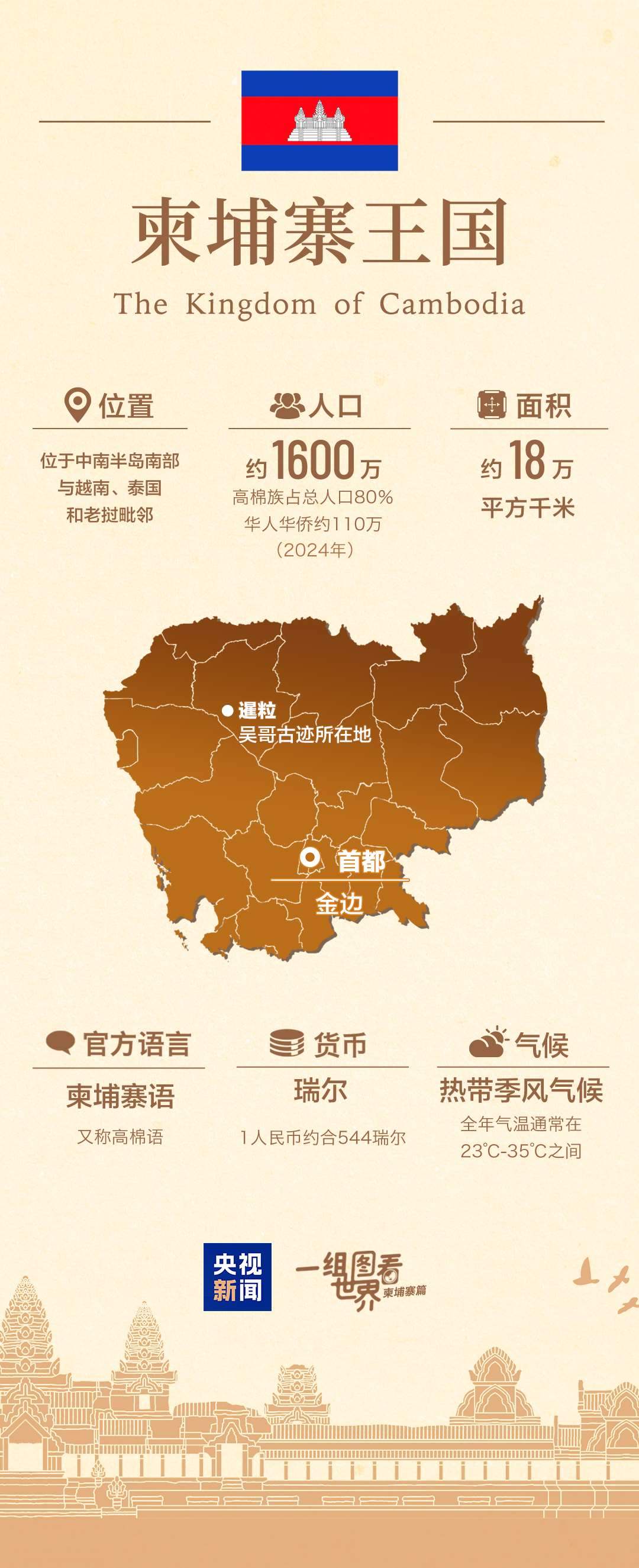 從國旗上的千年古跡吳哥窟,到湄公河畔會(huì)“呼吸”的洞里薩湖;從元代周達(dá)觀筆下的《真臘風(fēng)土記》,到與中國結(jié)下深厚情誼的西哈努克;從共建“一帶一路”的金港高速公路,到“鉆石六邊”合作架構(gòu)不斷充實(shí)……通過一組圖,帶您了解中國的這個(gè)“鐵桿”朋友——柬埔寨↓↓↓