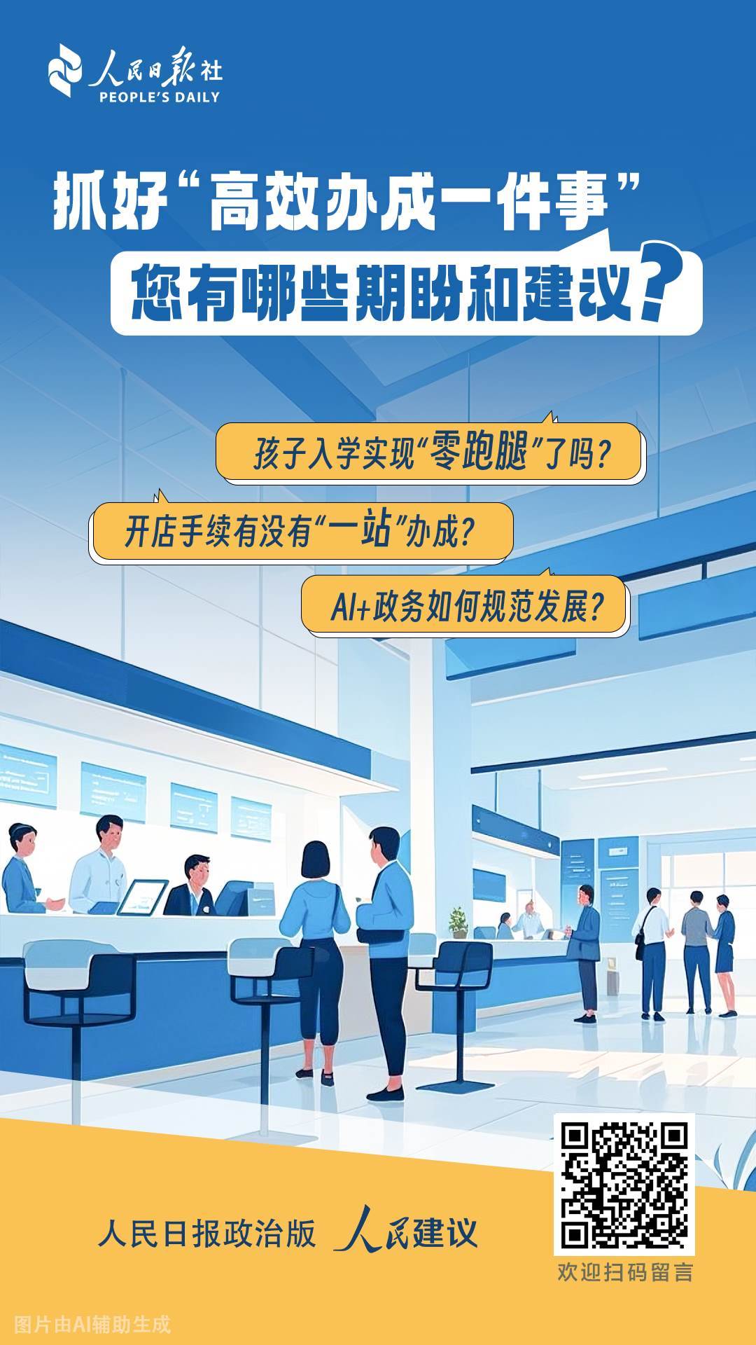抓好“高效辦成一件事” 人民日報政治版聯(lián)合人民網(wǎng)“人民建議”邀您聊聊期盼和建議