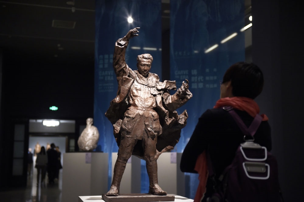 2018年4月1日,參觀者在北京的中國美術(shù)館參觀雕塑作品“冼星?!薄P氯A社記者 魯鵬攝