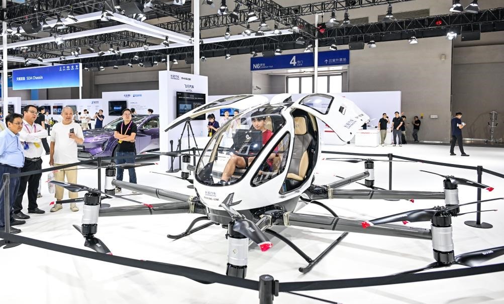 2025年9月5日,在重慶舉行的2025世界智能產(chǎn)業(yè)博覽會(huì)上,觀眾在長(zhǎng)安汽車展區(qū)參觀、體驗(yàn)“飛行汽車”。新華社記者王全超攝
