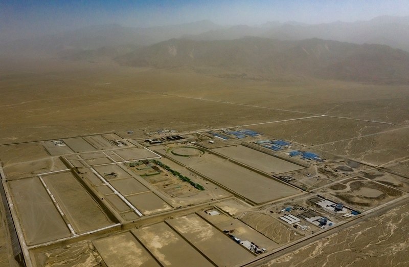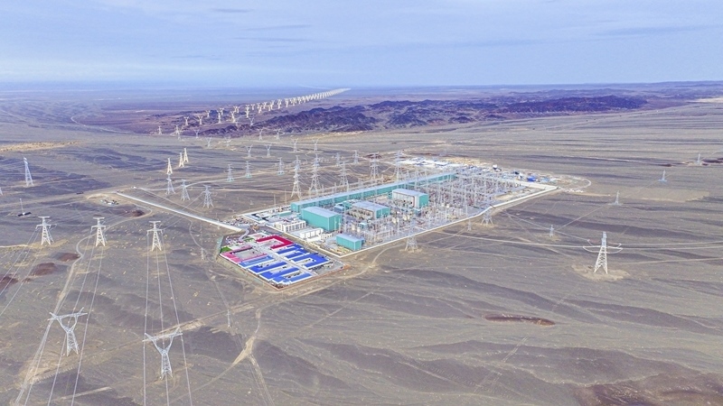 9月22日在新疆巴音郭楞蒙古自治州若羌縣拍攝的三峽集團(tuán)“疆電外送”第四通道電源項目施工現(xiàn)場(無人機(jī)照片)。