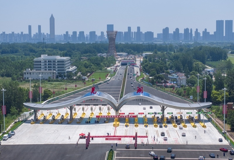 7月1日,車輛通過蕪湖龍灣長江隧道收費站(無人機照片)。