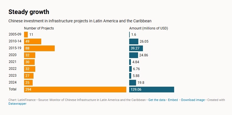 中國(guó)在拉丁美洲和加勒比地區(qū)投資基礎(chǔ)設(shè)施項(xiàng)目(來(lái)源:《拉美金融》)