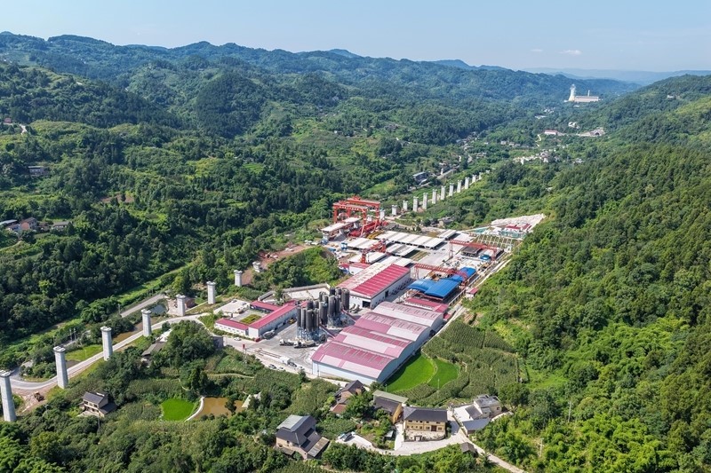 7月5日拍攝的渝萬高鐵江林村特大橋架梁施工作業(yè)現(xiàn)場(無人機(jī)照片)。